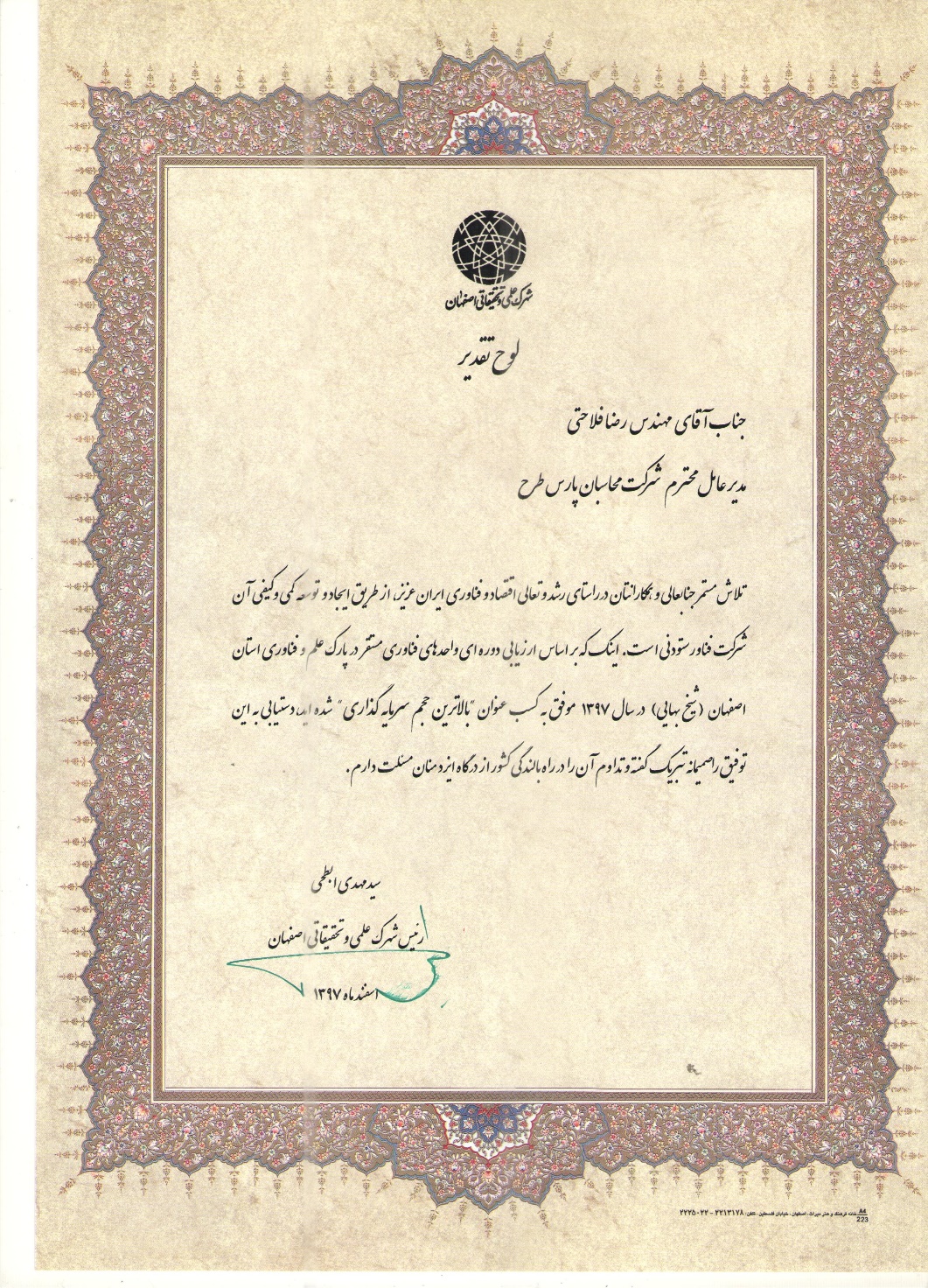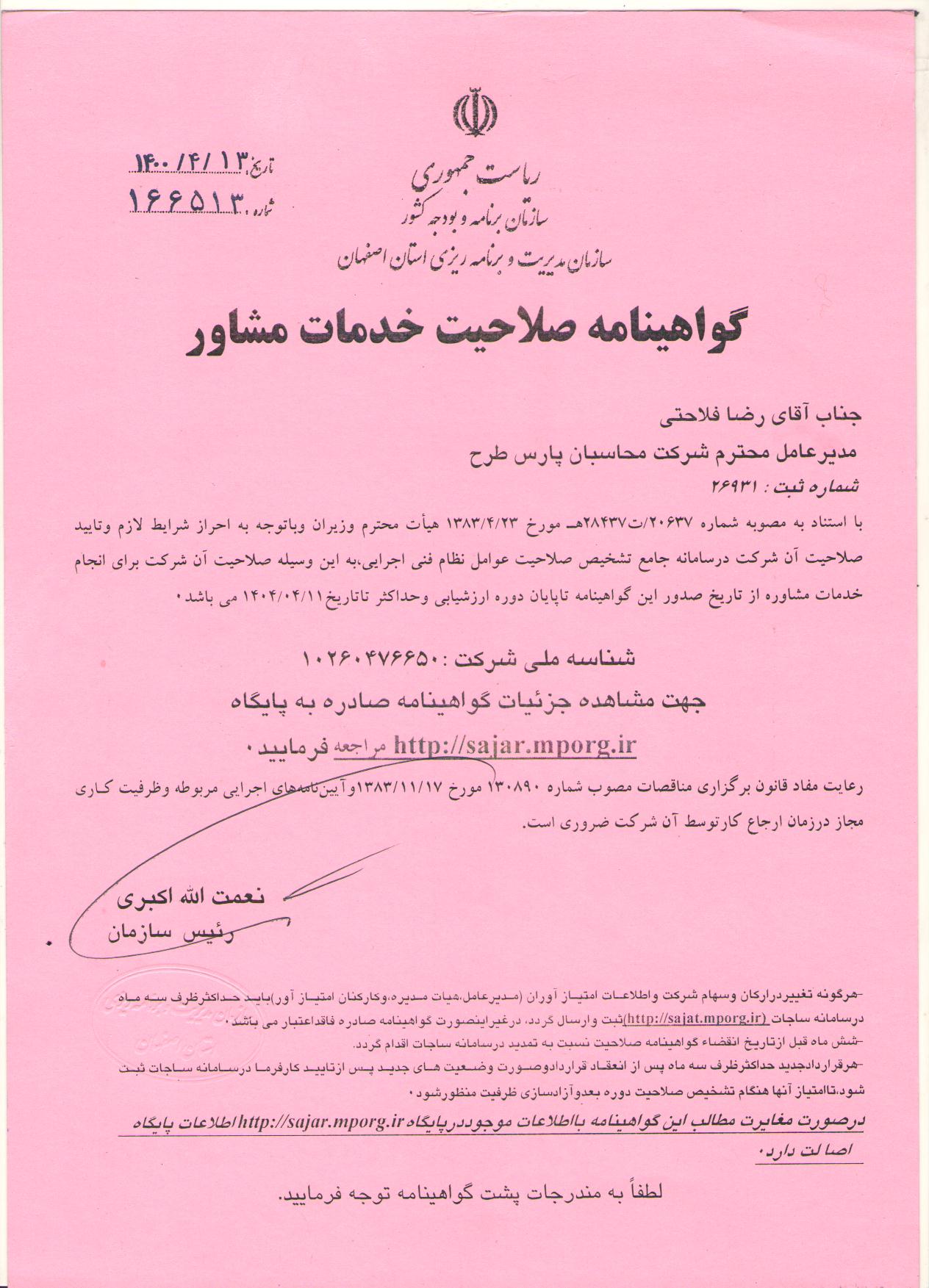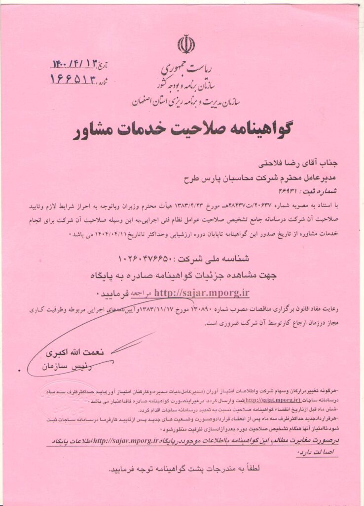 مدیرعامل شرکت مهندسین مشاور محاسبان پارس طرح